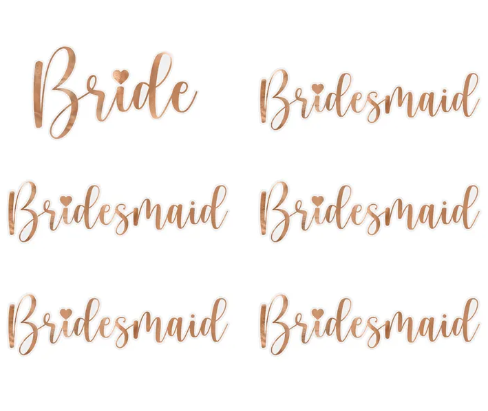 Autocolantes “Bride&Bridesmaid” Ouro Rosa 6unid