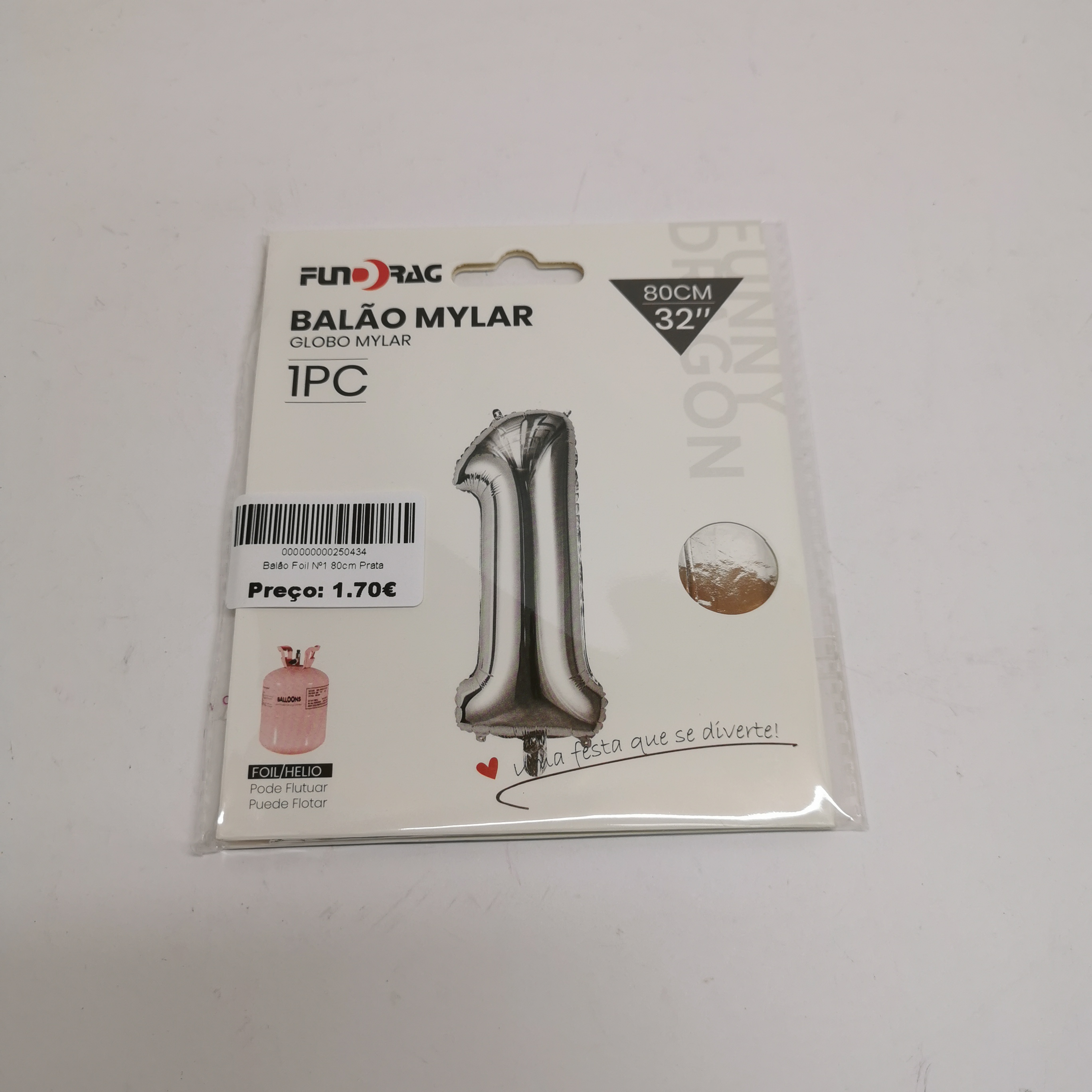Balão Foil Nº1 80cm Prata