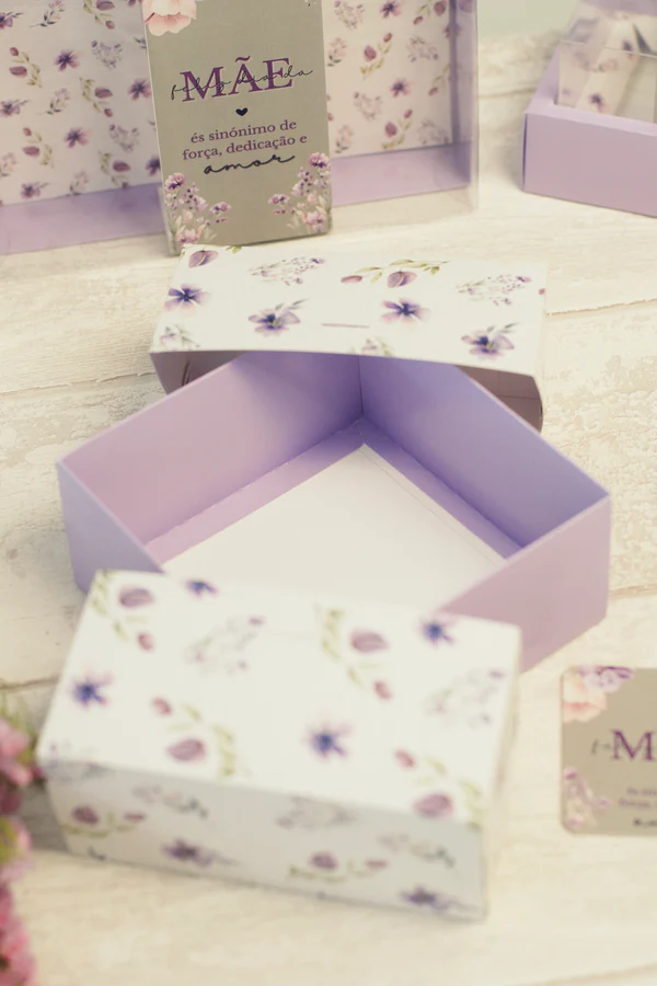 Caixa Dia da Mãe 16x16x7cm Malva – Montada