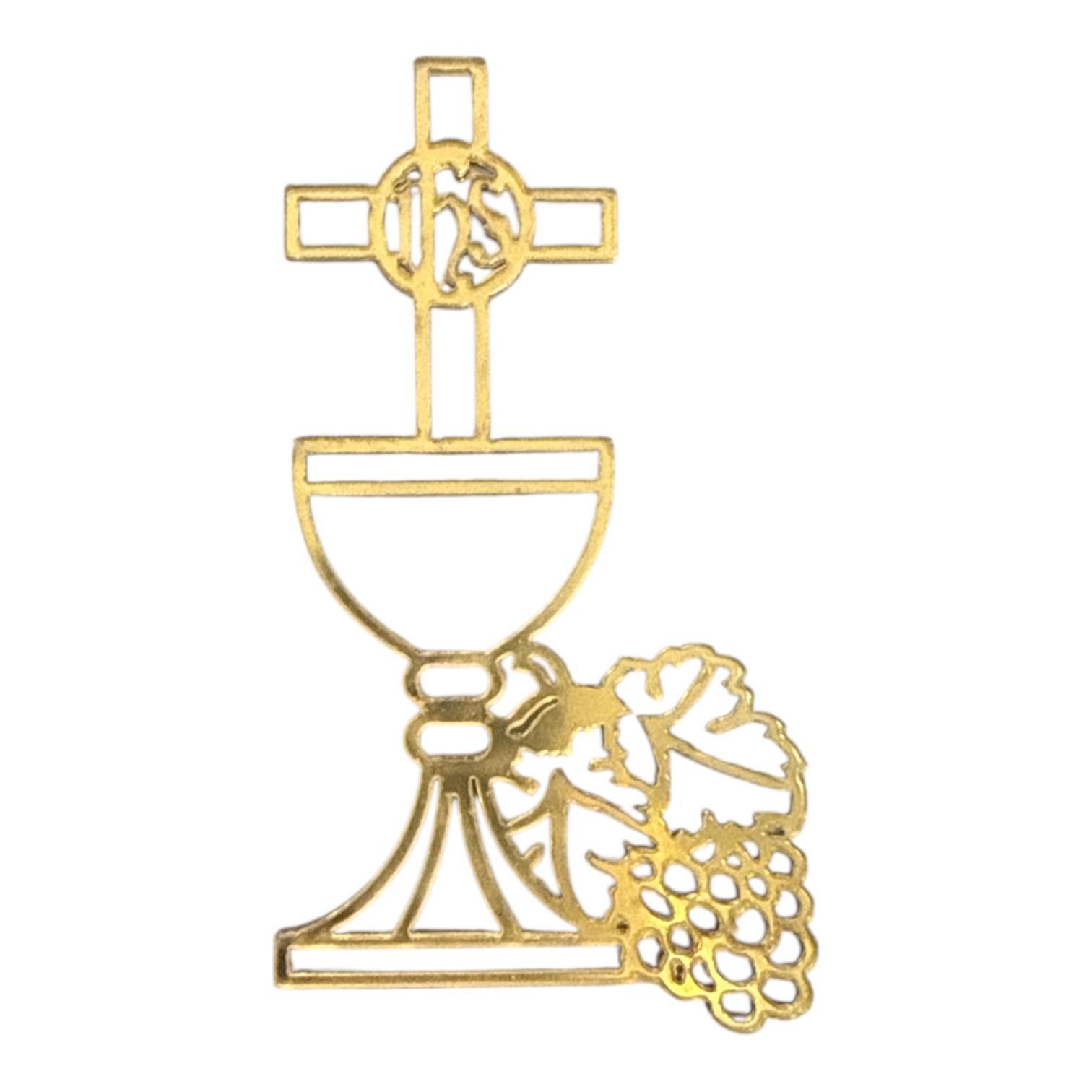 Cálice Acrílico Dourado c/Uva e Cruz 4×7.2cm