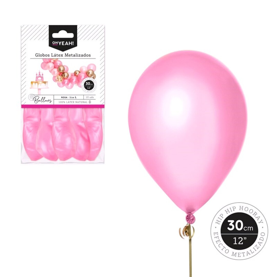 Conj 10 balões latex rosa metalizado 30cm