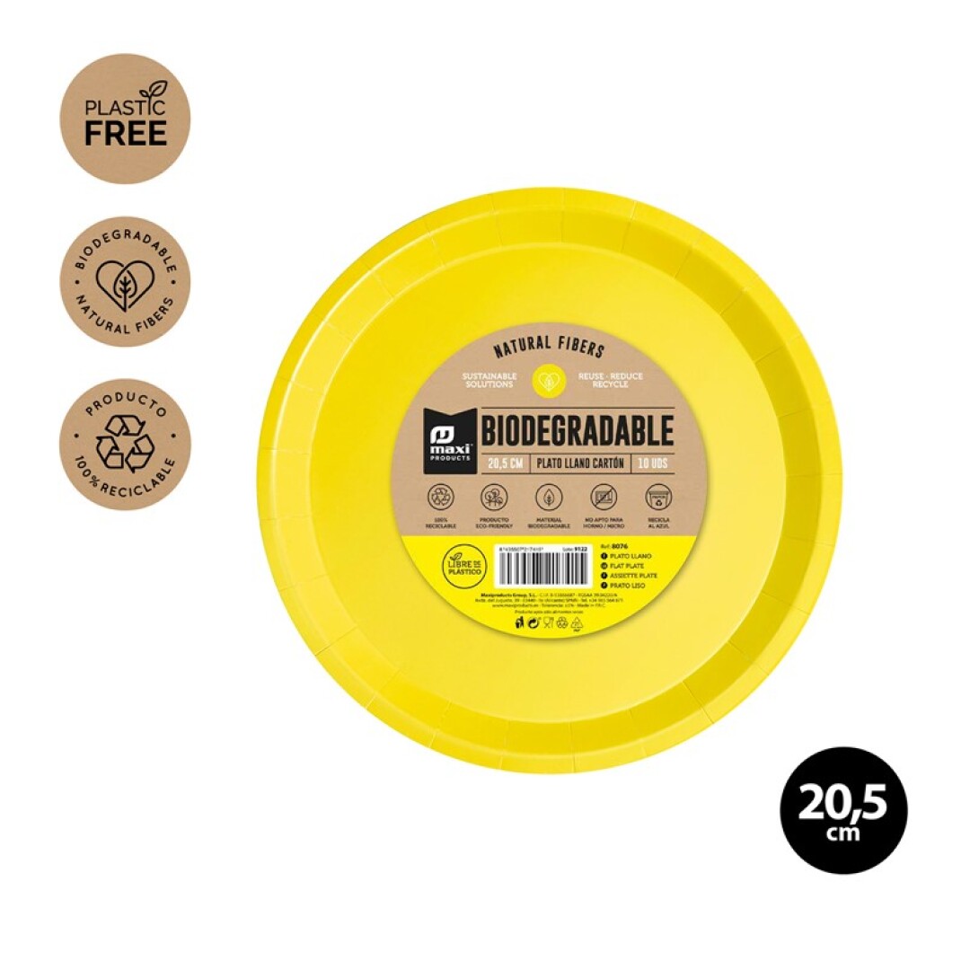 Conj. 10 Pratos Papel Biodeg. Amarelos 20.5cm