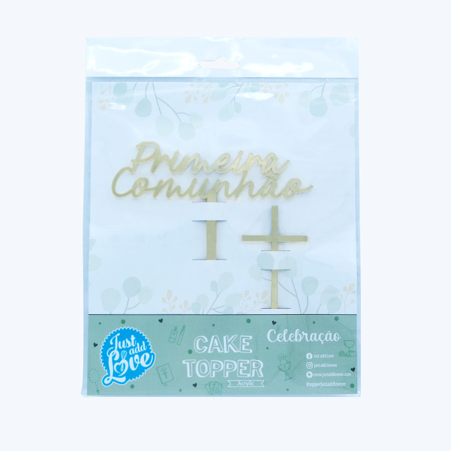 Conj. 2 Toppers Acrilico Primeira Comunhão Ouro