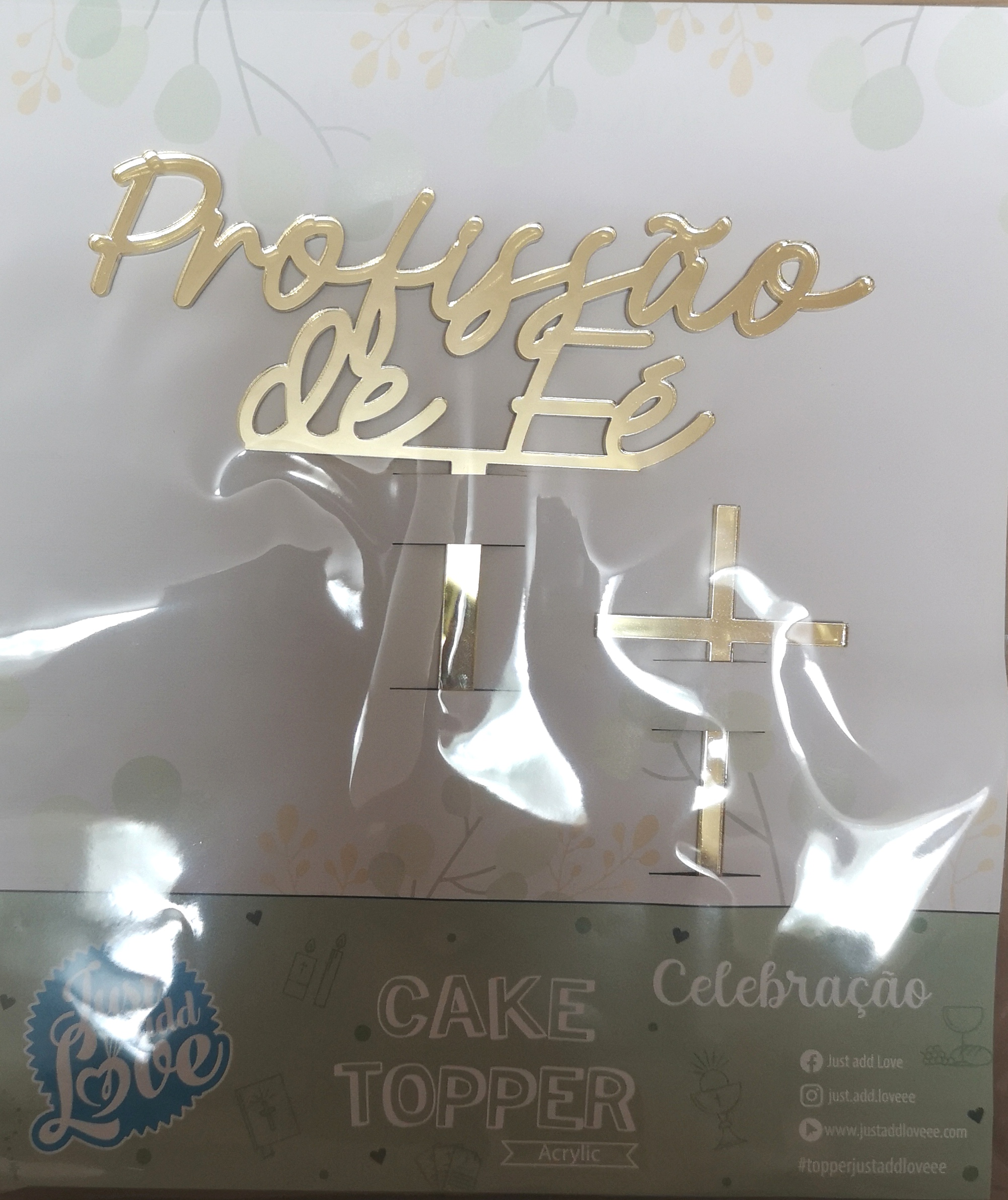Conj. 2 Toppers Acrilico Profissão de Fé Ouro