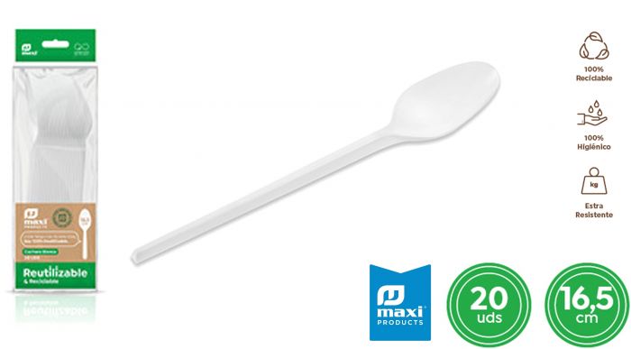 Conj. 20 Colheres Brancas Reutilizáveis 16.5cm