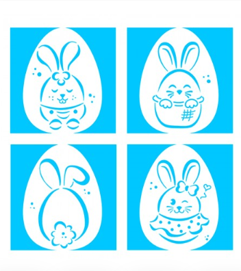 Conj. 4 Mini Stencils Coelhinhos Divertidos 7x7cm