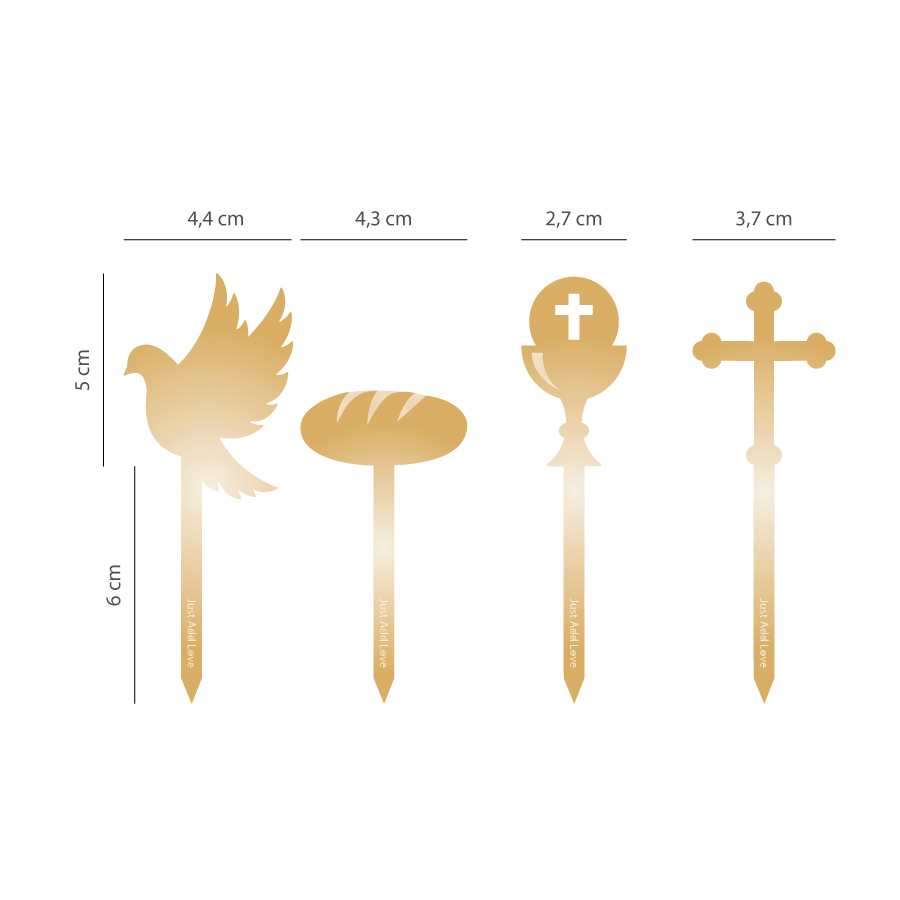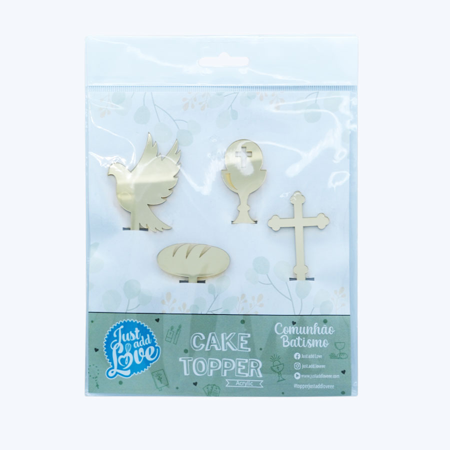 Conj. 4 Toppers Cupcake Comunhão/Crisma Ouro