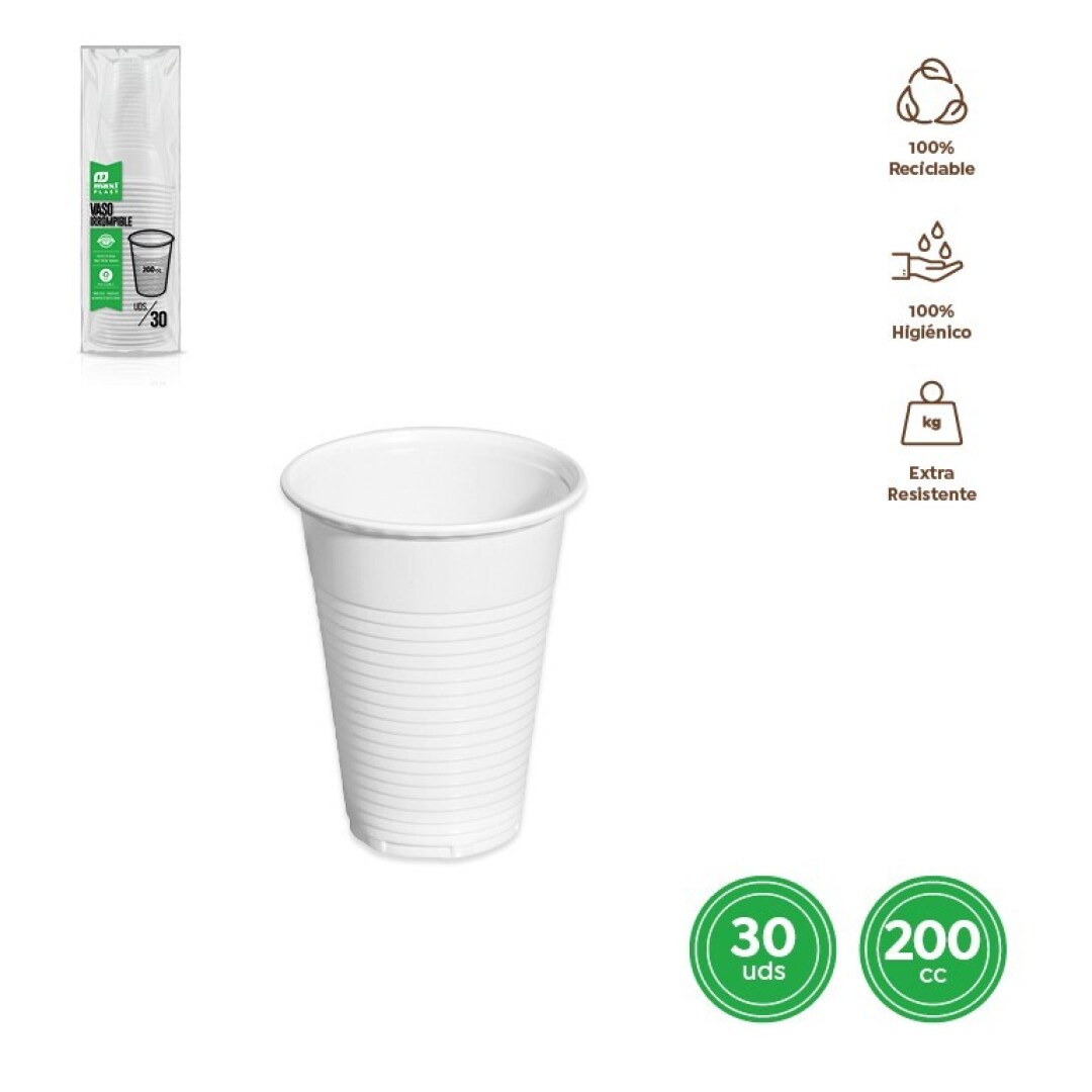 Copos Plástico Branco 200ml 30unids