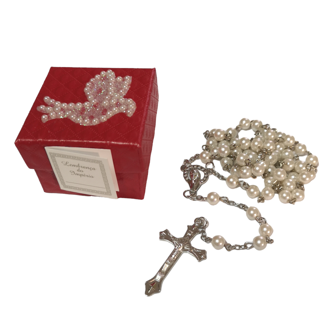 Lembrança Espírito Santo Cx c/Terço Verm. c/Pomba