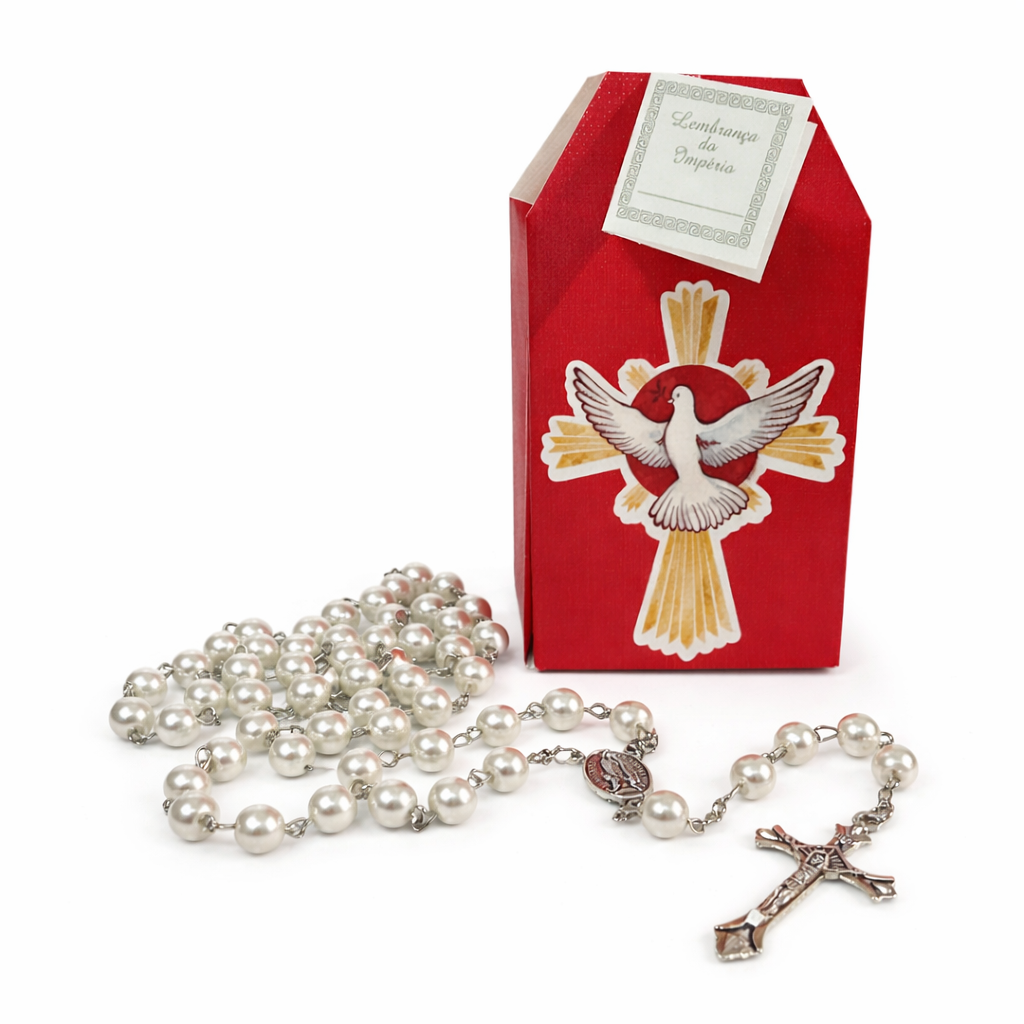 Lembrança Espírito Santo Cx Vermelha Pomba c/Terço