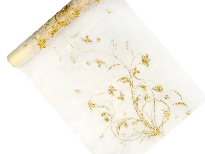 Organza c/Desenhos Dourado 35cm 9mts