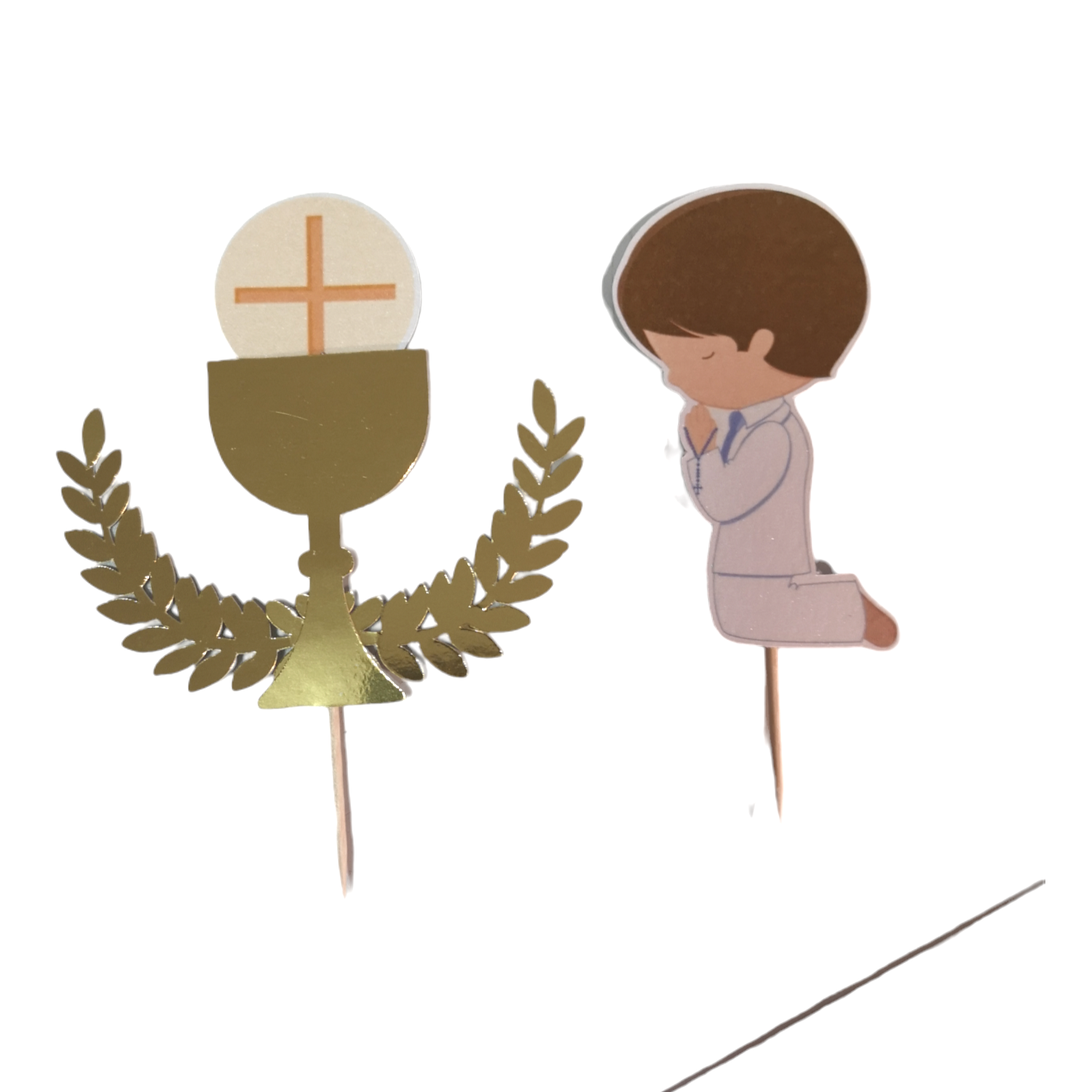 Topper Comunhão Menino Rezar c/Cálice Ouro