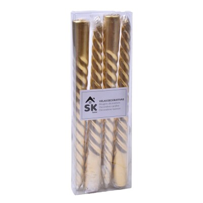 Velas Castiçal Torneadas 20cm Douradas 4unids