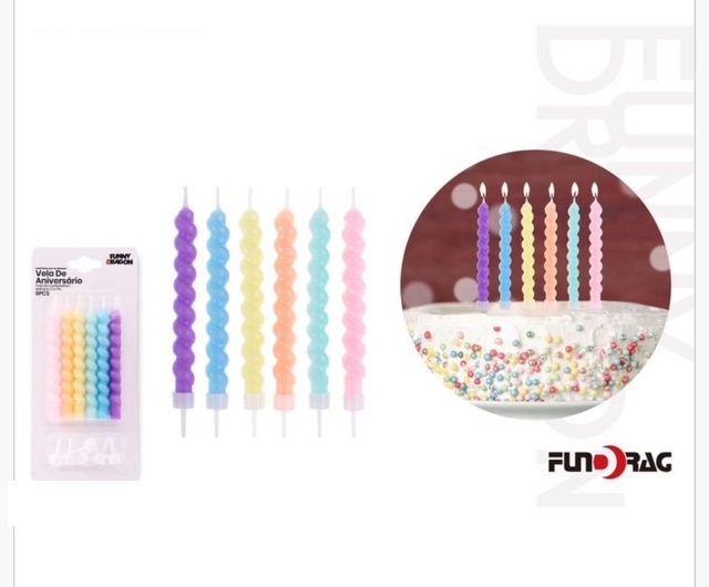 Velas Coloridas Torcidas aprox.9cm 6unids